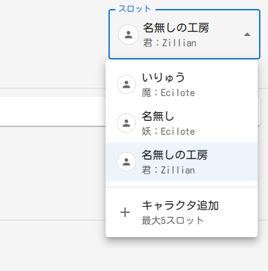 自動保存機能と保存データ構造の見直しを進めたので、少し動作が不安定なところもあるかもしれないんだけど、最新版公開しちゃうよ!スロット選択機能を追加したので、これで複数キャラの管理が可能に。上限5スロットにしたんだけど、少ないかな?